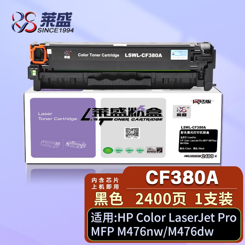 莱盛 LS-CF380A 粉盒 标容 黑色 全新 有芯片 2.4K 20支/箱